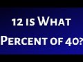 12 Is What Percent Of 40 Math Videos Percents Math
